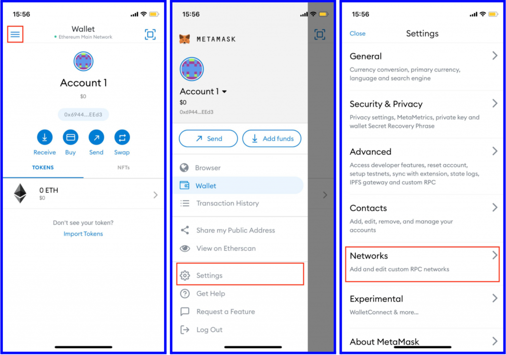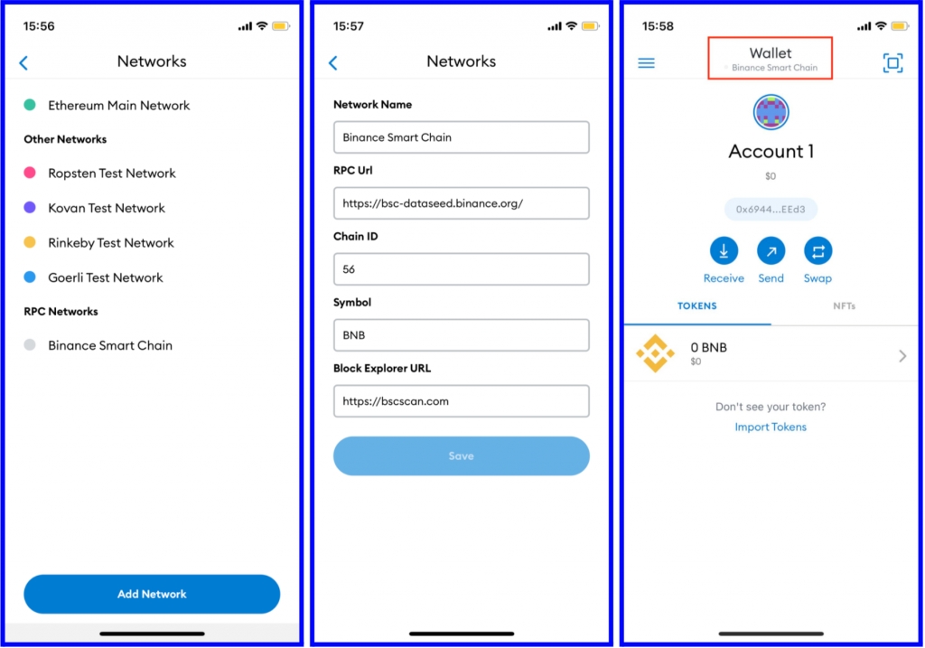 Step 4: Since NEXT is running on Binance Smart Chain (BSC), now we will add the Binance Smart Chain (BSC) network into your Metamask. From the main screen, press the Menu button then press Setting and choose Network. Click add Network then input the following information: