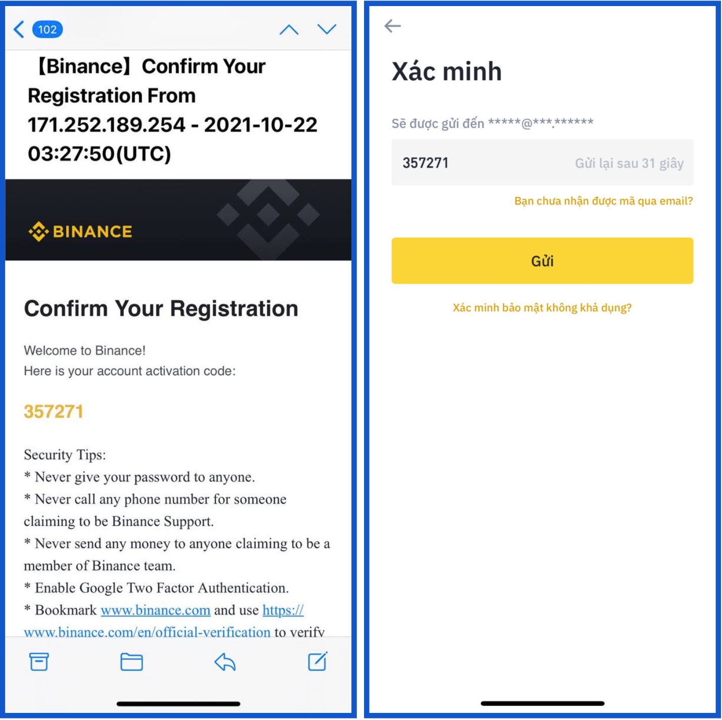 Bước 3 : Binance sẽ gửi mã xác nhận đến email của bạn. Bạn hãy vào hộp thư của mình, sao chép chuỗi 6 chữ số do Binance gửi đến sau đó dán vào phần mã xác minh.