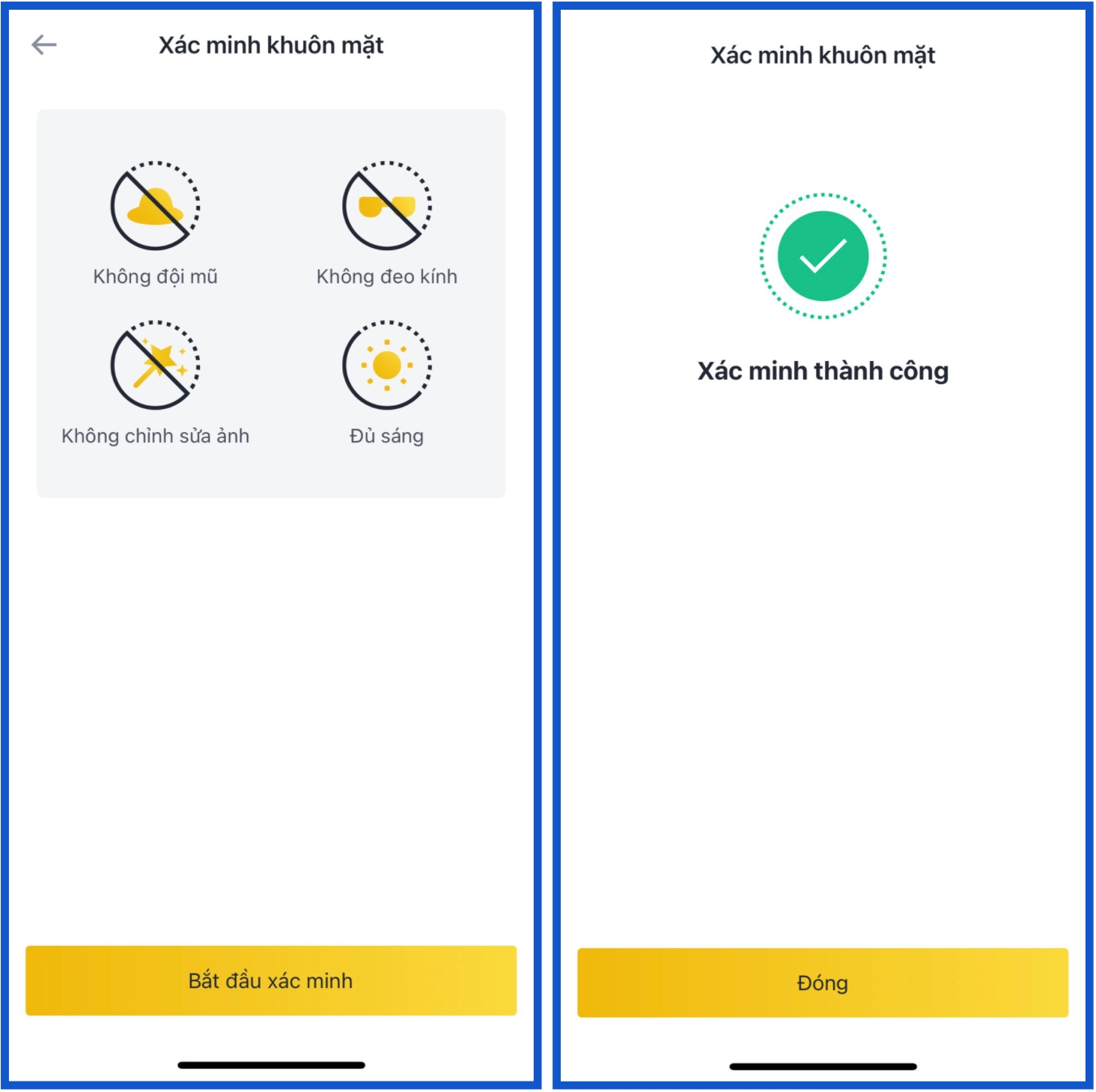 Bước 4 : Bạn đã tạo xong tài khoản Binance. Bước tiếp theo là xác minh tài khoản của bạn (KYC) trước khi giao dịch. Vui lòng nhấn vào nút Xác minh ngay trên màn hình điện thoại của bạn để tiếp tục. Quá trình này sẽ bao gồm việc cung cấp thông tin cá nhân, xác minh danh tính và xác minh khuôn mặt của bạn.