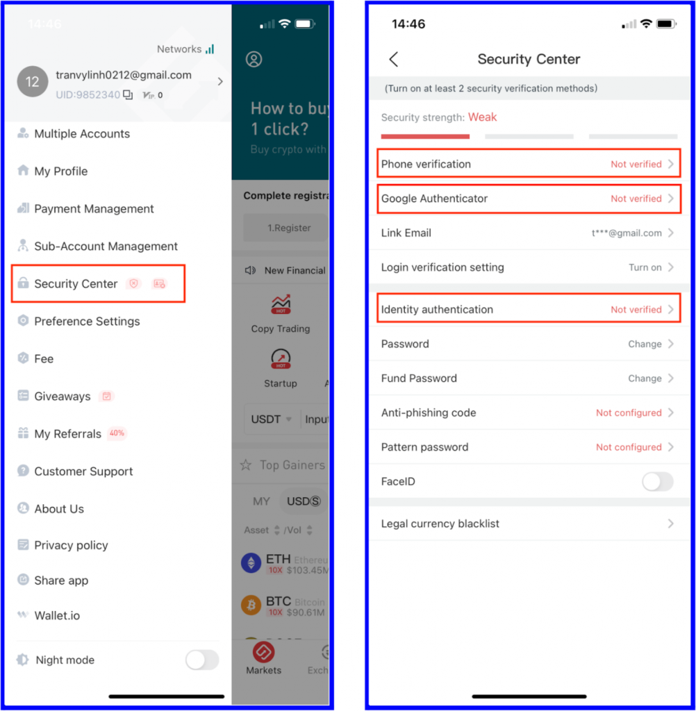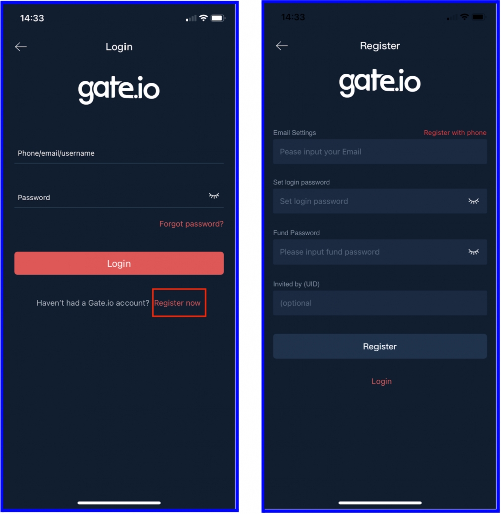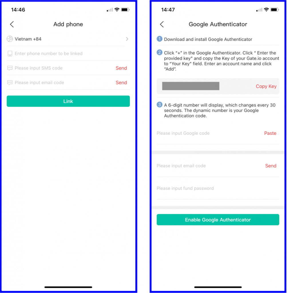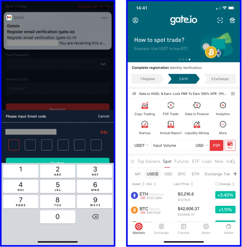 Bước 2: Mở ứng dụng và bắt đầu quá trình đăng ký. Vì mục đích bảo mật, Gate sẽ yêu cầu bạn chọn một Fund password. Đây là mật mã cần thiết cho quá trình rút tiền; bạn hãy giữ nó thật an toàn. Gate sẽ gửi một mã gồm 6 số đến địa chỉ email của bạn để hoàn tất việc đăng ký.