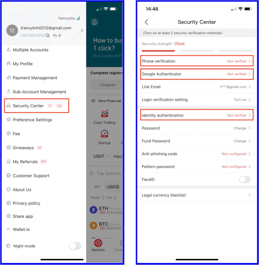 Bước 3: Tiếp theo, chúng ta sẽ cải thiện bảo mật tài khoản bằng cách hoàn thành Xác minh điện thoại, Google Authenticator cũng như hoàn tất quy trình KYC. Bạn thực hiện theo các hướng dẫn một cách cẩn thận để hoàn thành các bước trên.